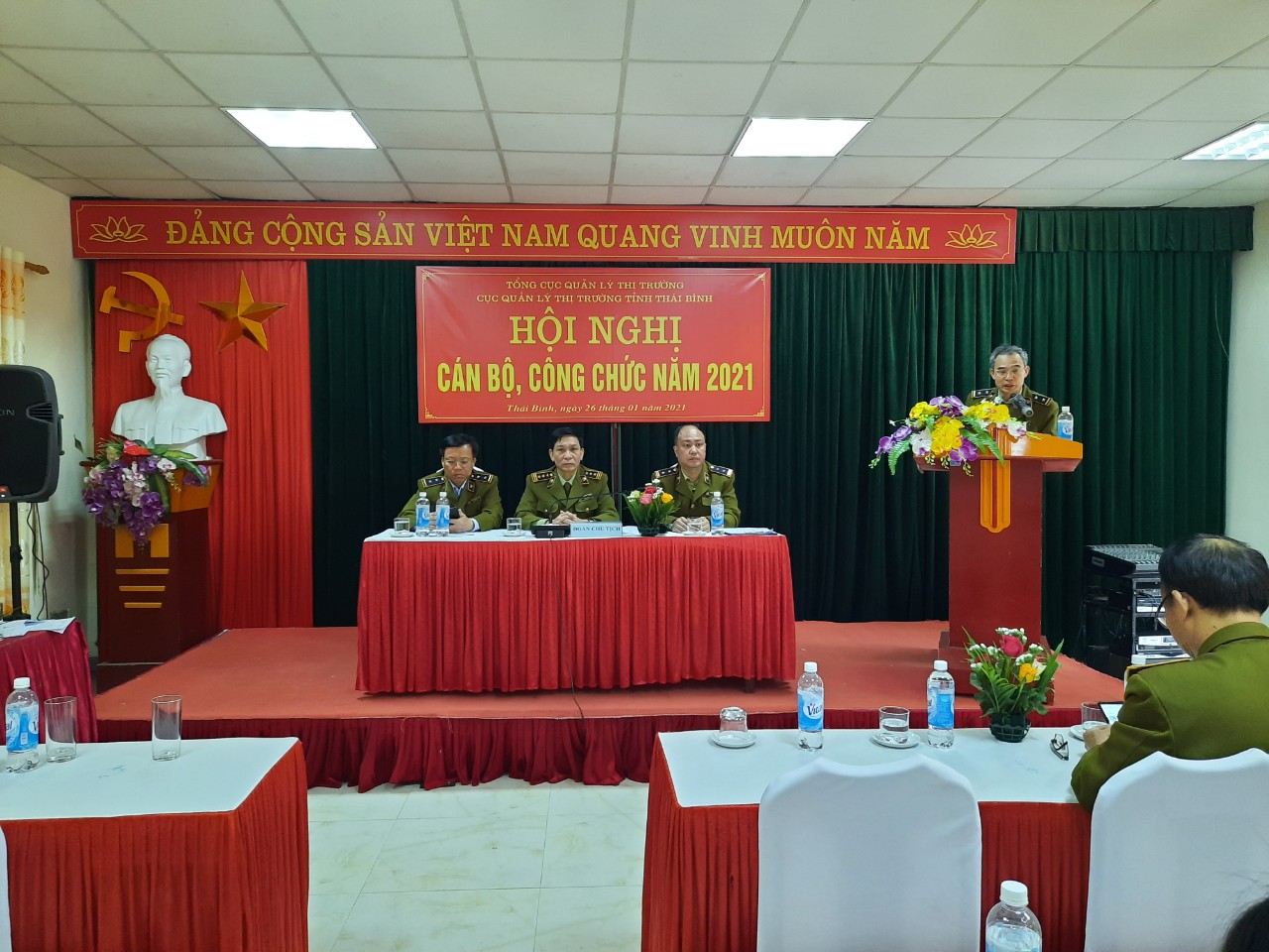Ngày 26/01/2021, Cục Quản lý thị trường (QLTT) tỉnh Thái Bình đã tổ chức Hội nghị cán bộ công chức năm 2021. Tham dự Hội nghị có các đồng chí Lãnh đạo và toàn thể công chức, người lao động trực thuộc Cục. Đồng chí Nguyễn Văn Nghiên - Bí thư Đảng uỷ, Cục trưởng Cục QLTT Thái Bình chủ trì Hội nghị.