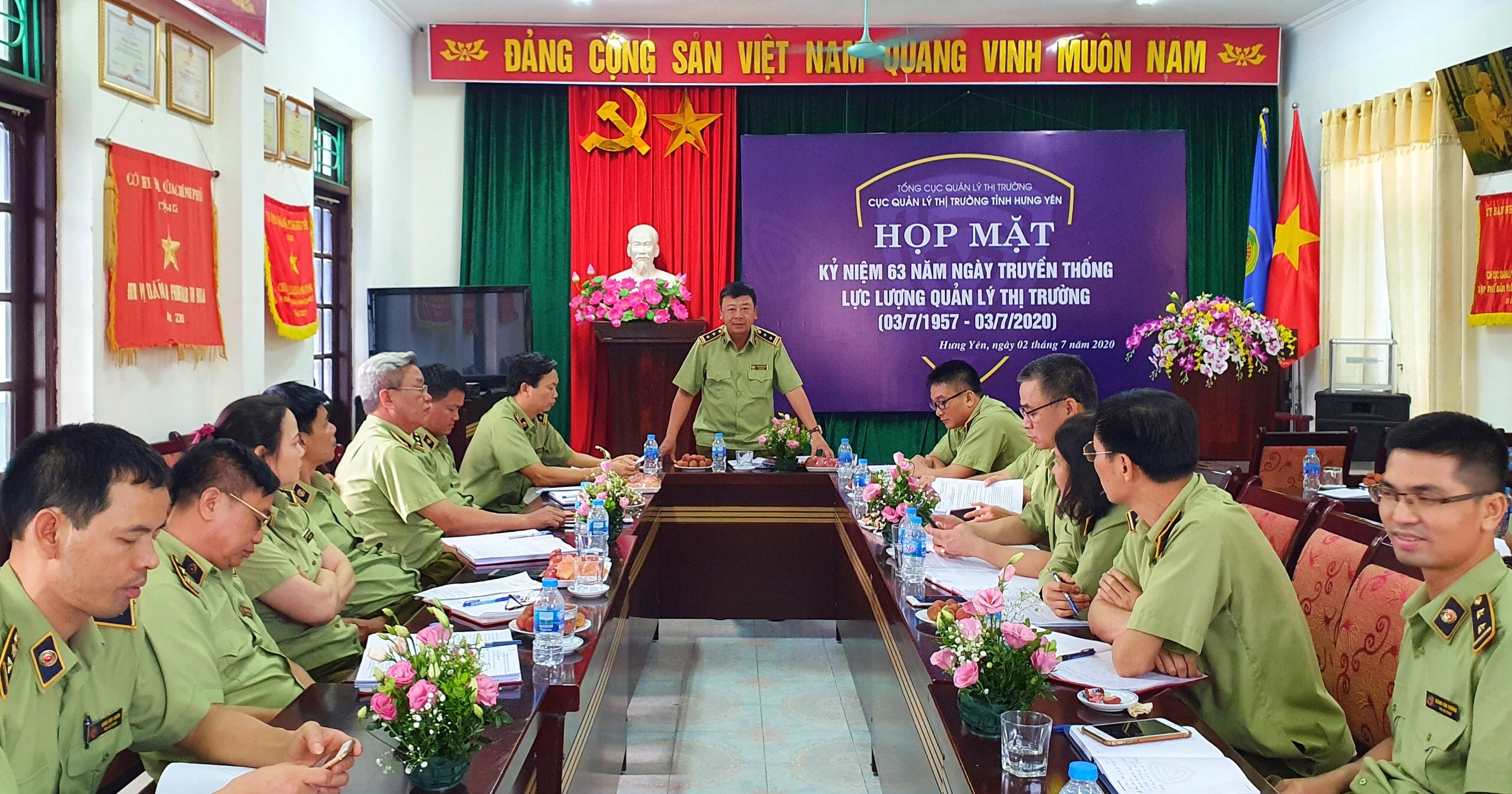 Ngày 06/11/2020, Cục Quản lý thị trường tỉnh Hưng Yên tổ chức họp Giao ban công tác Quản lý thị trường đánh giá kết quả thực hiện nhiệm vụ tháng 10 và 10 tháng đầu năm 2020, triển khai nhiệm vụ công tác trong những tháng cuối năm trong đó có nội dung về tổng kết Kế hoạch định kỳ năm 2020. Đồng chí Trần Tùng Lâm, Cục trưởng chủ trì cuộc họp. Tham dự có các đồng chí Phó Cục trưởng, lãnh đạo các Phòng chuyên môn, nghiệp vụ và các Đội Quản lý thị trường trực thuộc.
