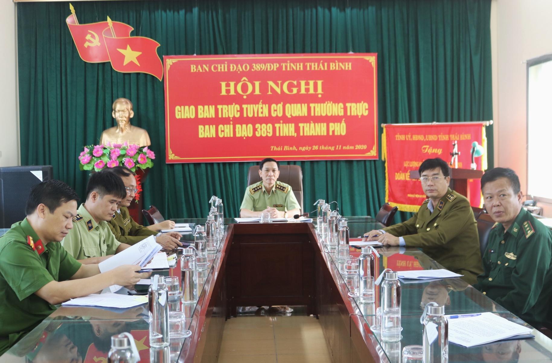 Sáng ngày 26/11/2020, tại điểm cầu Thái Bình, Cơ quan Thường trực Ban Chỉ đạo 389/ĐP tỉnh - Cục Quản lý thị trường đã tổ chức tham gia Hội nghị giao ban trực tuyến với Văn phòng Thường trực Ban Chỉ đạo 389 Quốc gia. Đồng chí Nguyễn Văn Nghiên - Phó Trưởng Ban chỉ đạo - Bí thư Đảng uỷ, Cục trưởng Cục Quản lý thị trường chủ trì Hội nghị.