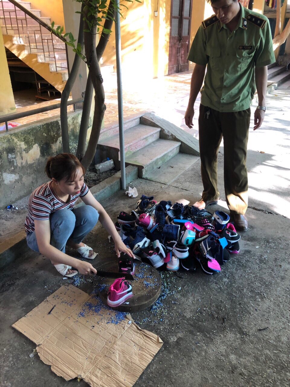 ĐỘI QLTT SỐ 6, CỤC QUẢN LÝ THỊ TRƯỜNG TỈNH HƯNG YÊN KIỂM TRA MẶT HÀNG GIÀY, DÉP GIẢ MẠO NHÃN HIỆU NỔI TIẾNG