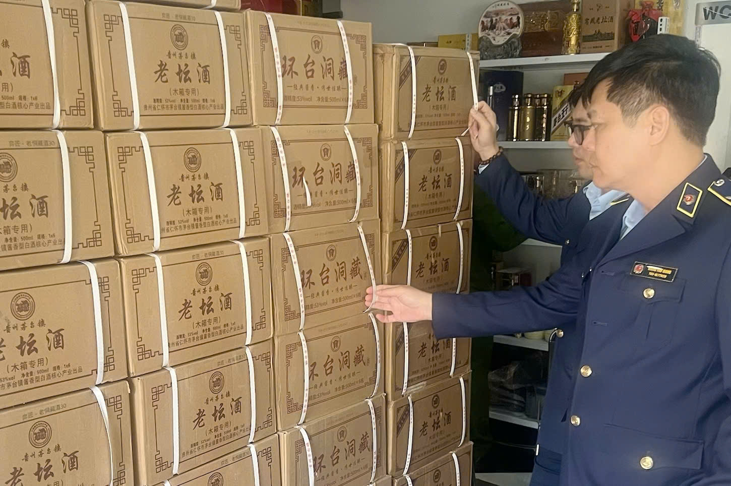 Qua kiểm tra, toàn bộ số rượu nêu trên đều có nhãn ghi thông tin bằng chữ nước ngoài (chữ Trung Quốc), chủ cơ sở không xuất trình được hóa đơn, chứng từ hợp pháp chứng minh nguồn gốc xuất xứ. Lực lượng chức năng xác định số hàng hóa có dấu hiệu là hàng nhập lậu và đã lập biên bản tạm giữ, niêm phong toàn bộ tang vật để tiếp tục xác minh, làm rõ hành vi vi phạm.