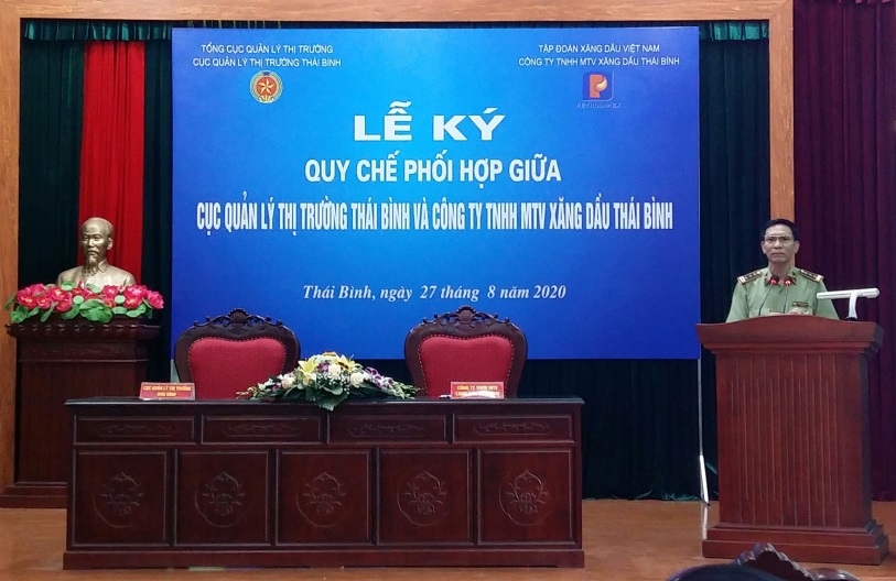 Chiều ngày 27/8/2020, Cục QLTT Thái Bình và Công ty TNHH MTV xăng dầu Thái Bình đã tổ chức Lễ ký kết Quy chế phối hợp trong hoạt động sản xuất, kinh doanh xăng dầu trên địa bàn tỉnh Thái Bình.