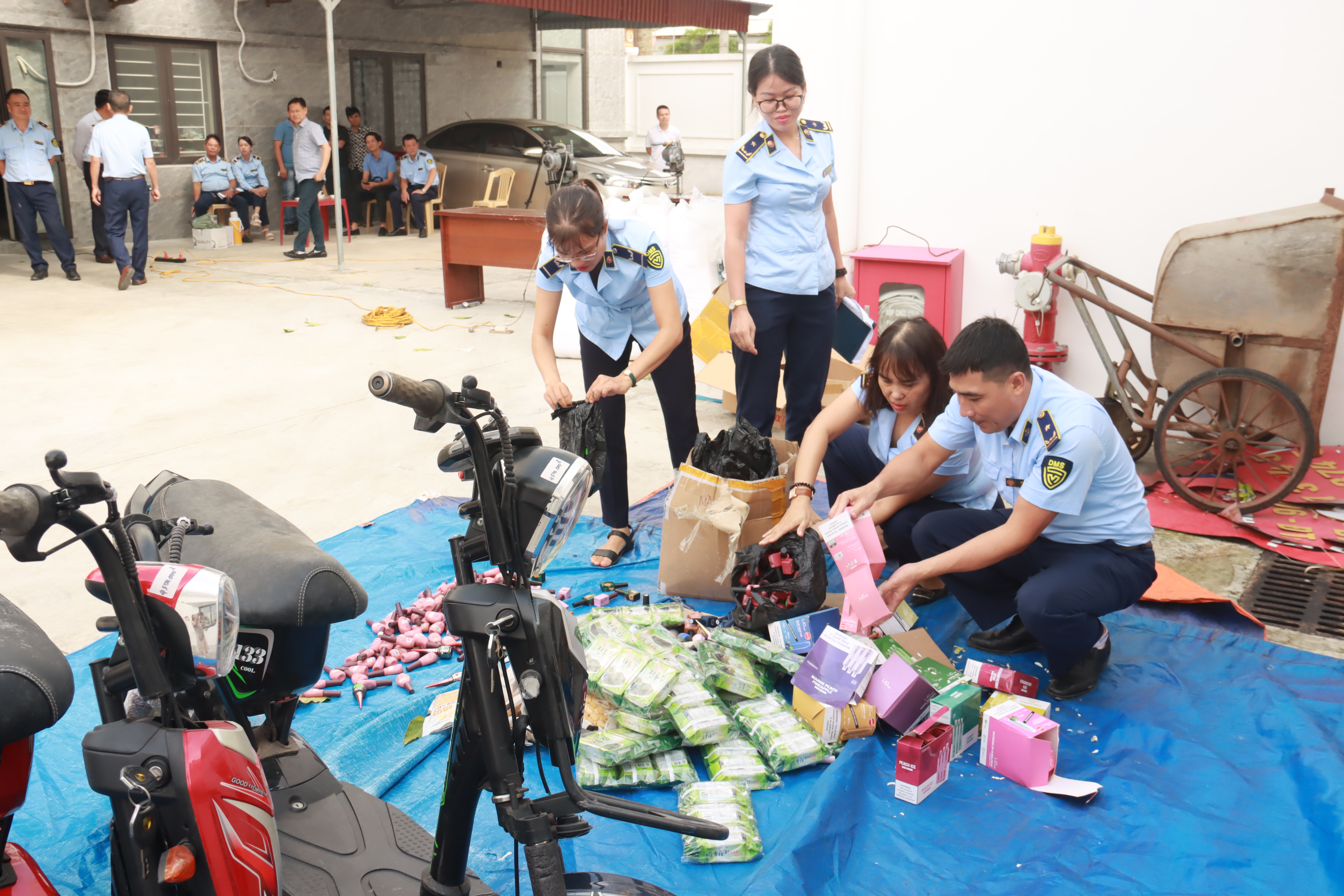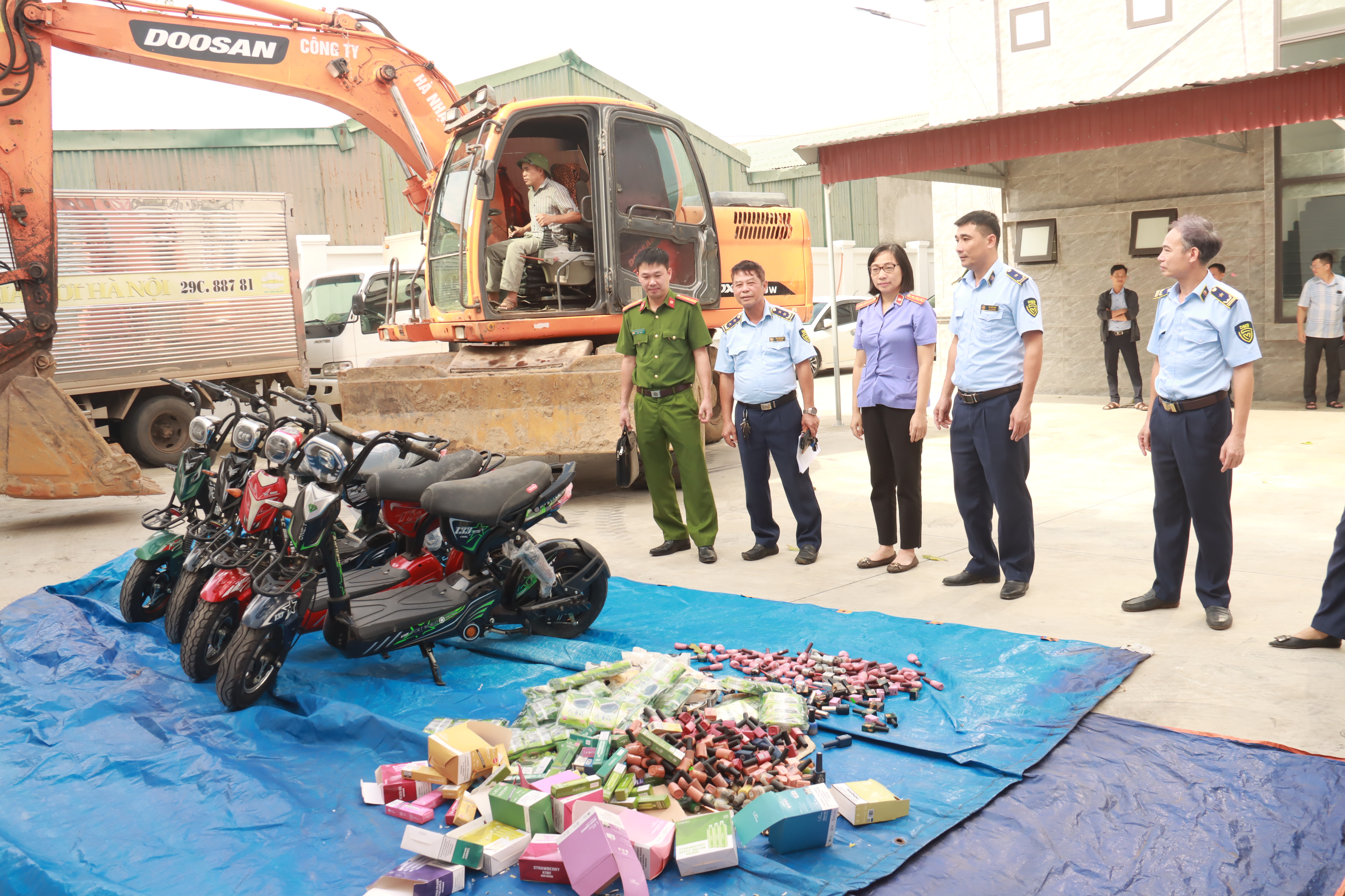 Sau đó, dưới dự giám sát của các thành viên Hội đồng tiêu hủy và đại diện các đơn vị liên quan, toàn bộ tang vật vi phạm hành chính bị tịch thu được tiến hành tiêu huỷ theo hình thức cơ học tại trụ sở Cục Quản lý thị trường tỉnh Thái Bình. Cụ thể: Đối với các sản phẩm là xe gắn máy điện: Đập bẹp, làm mất giá trị sử dụng, sau đó thu hồi phế liệu để bán theo quy định. Đối với các sản phẩm là Kẹo sữa, Rong biển đậu hủ, Áo phông, Thuốc lá điện tử, Sơn móng tay, Nước hoa, Mi nối, Son môi, Tất chân: Cắt, đập bẹp, làm biến dạng hình thái ban đầu. Sau khi cắt, đập bẹp thu gom lại để tiếp tục tiêu hủy bằng hình thức Hủy đốt. Sau khi làm biến dạng hình thái ban đầu bằng hình thức cơ học đã thực hiện thu gom và vận chuyển đến Công ty Cổ phần đầu tư và kỹ thuật tài nguyên môi trường ETC. Địa chỉ: Đường D1 (M2+M3), KCN Hòa Xá, P.Lộc Hòa, TP Nam Định, tỉnh Nam Định để thực hiện Tiêu huỷ bằng hình thức Hủy đốt.