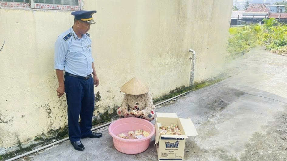 Đội QLTT số 3 chứng kiến cơ sở tiêu hủy bánh trung thu tại phường Mỹ Phước Tây