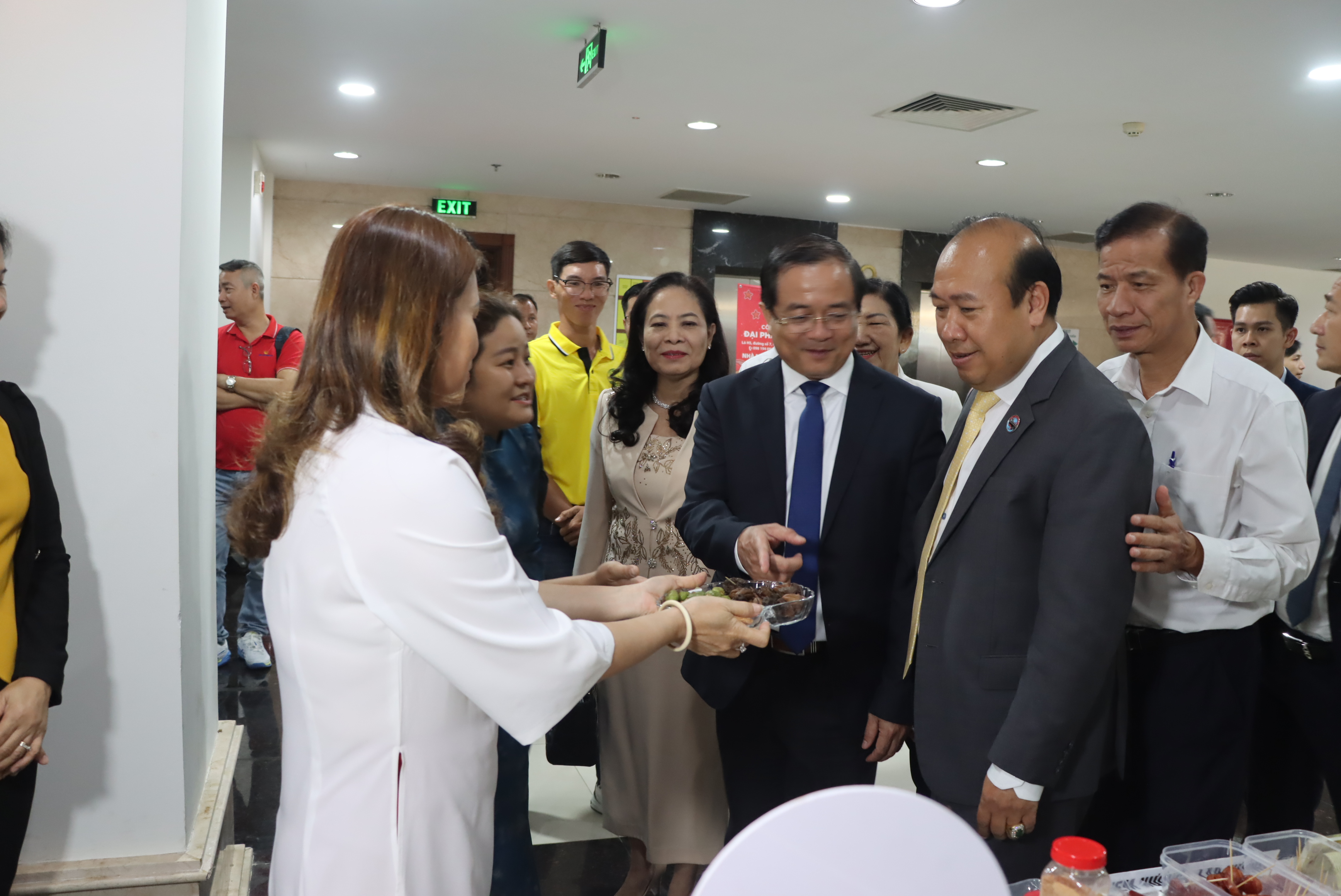 Ông Nguyễn Anh Sơn, Cục trưởng Cục Xuất nhập khẩu, Bộ Công Thương Việt Nam thăm gian hàng trưng bày yến chưng