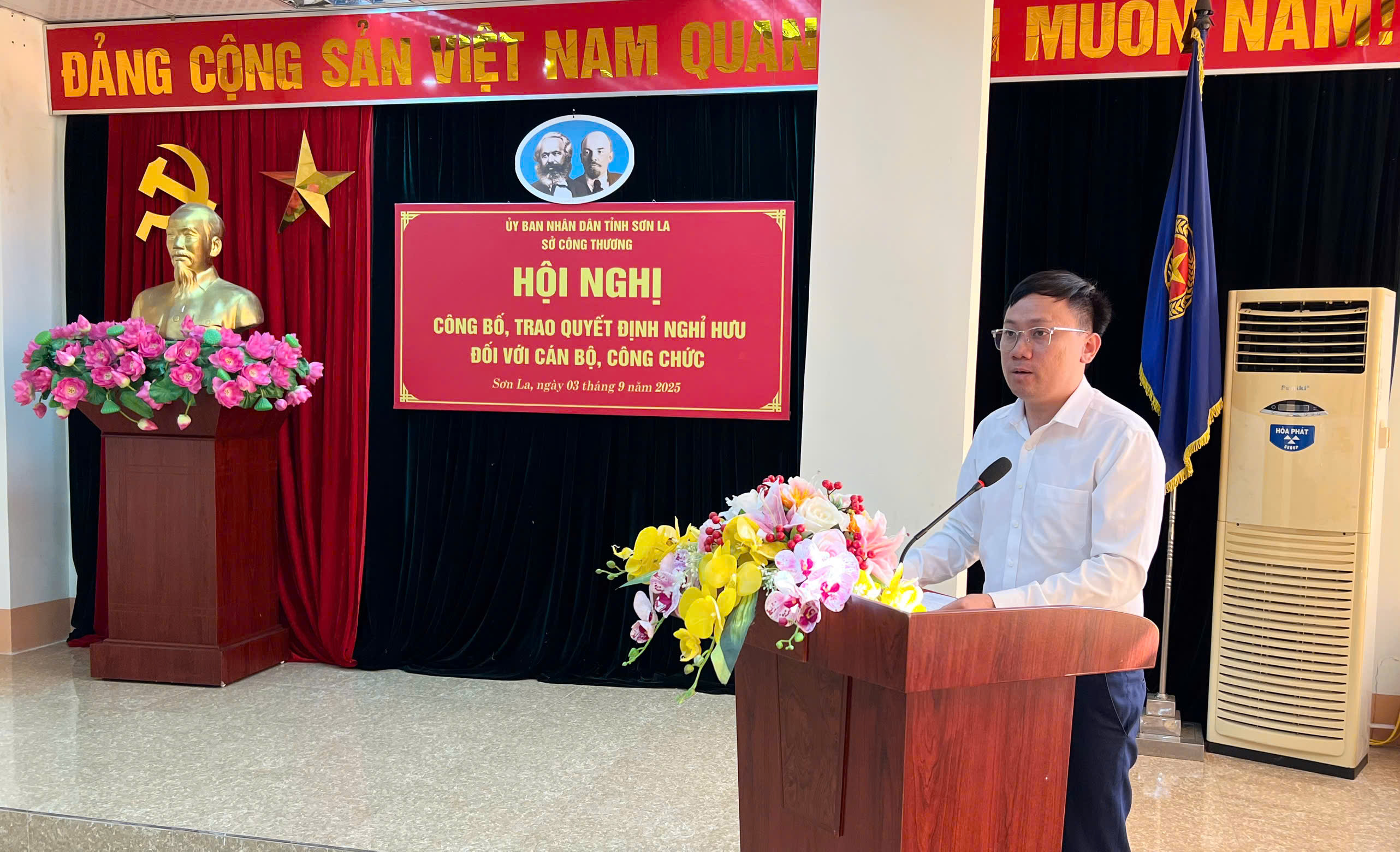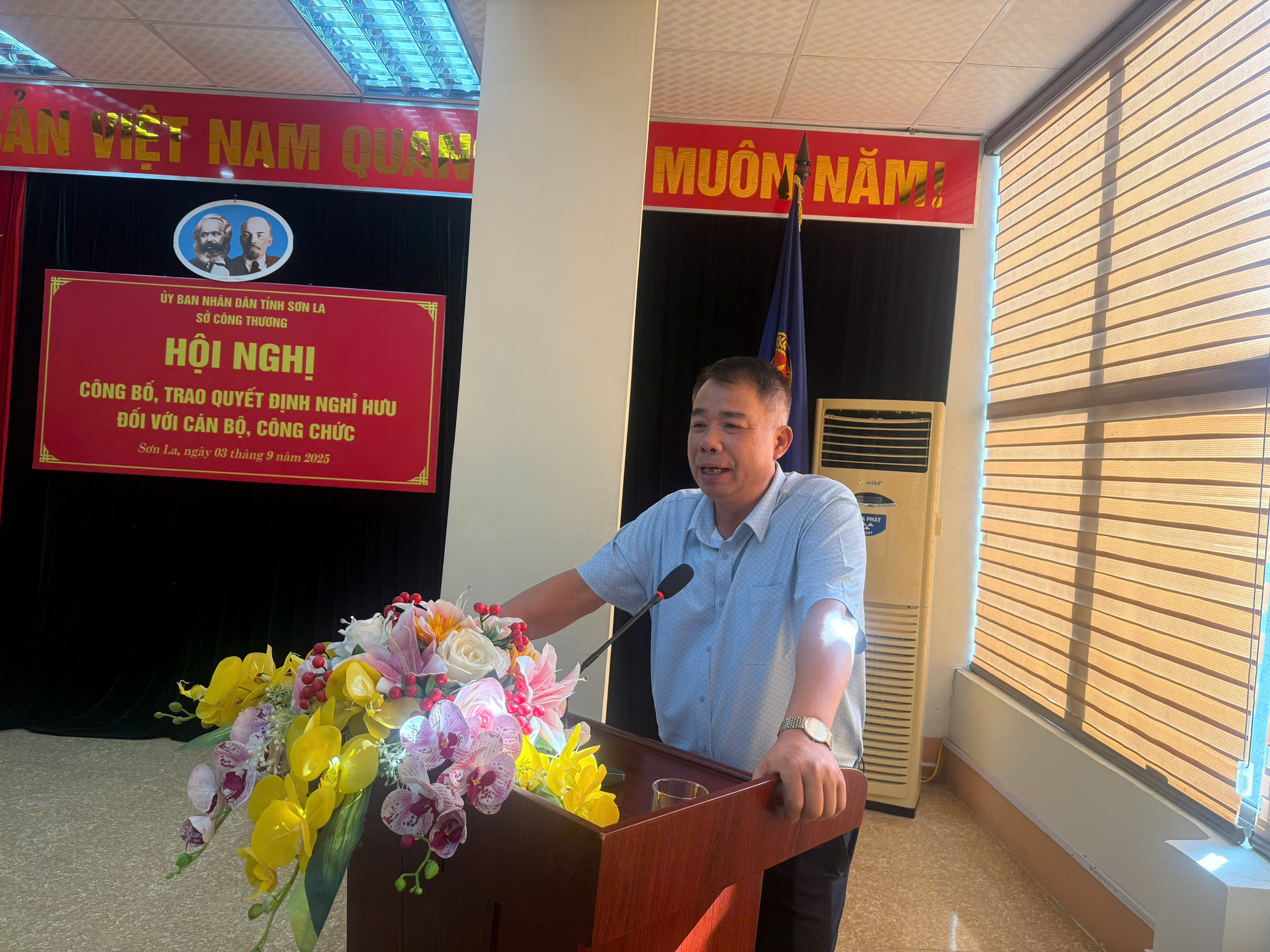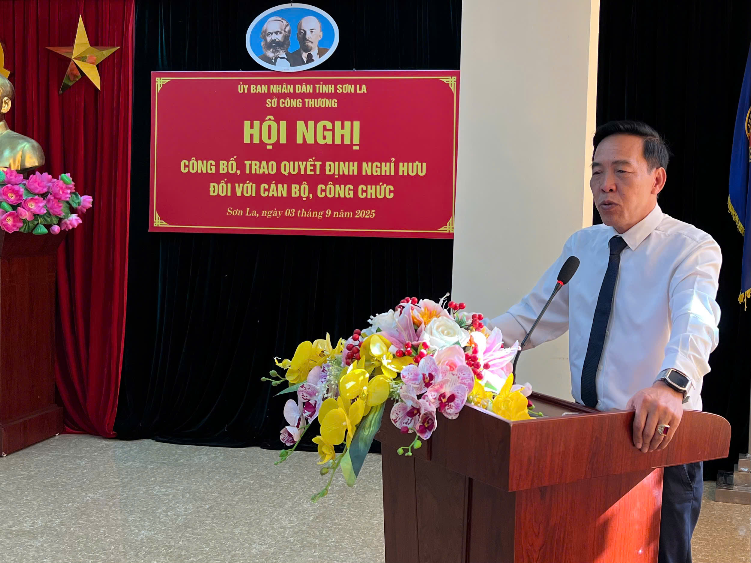 Chiều ngày 03/9/2025, Sở Công Thương tỉnh Sơn La tổ chức Hội nghị công bố Quyết định nghỉ hưu trước tuổi đối với 06 cán bộ, công chức Chi cục QLTT và Sở Công Thương.